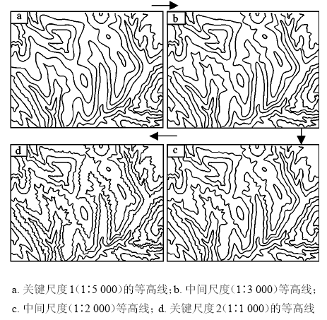 Fig.8 Continual-scale representations of contours based on morphing technique图8 基于图形渐变技术的等高线连续尺度表达 |