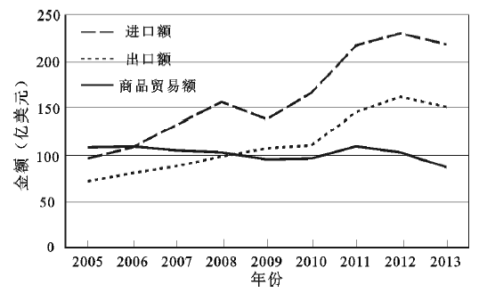 年份 | 占进口额的百分比 | 占出口额的百分比 | |||||||