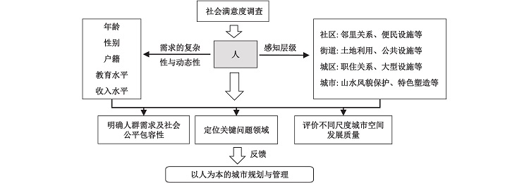 In recent years, urban construction in China has gradually changed from “production-centered” to “people’s life-centered”. How to enhance the people’s sense of acquisition has become the goal of urban improvement. Therefore, the Beijing government and the Ministry of Housing and Urban-Rural Development have introduced social satisfaction surveys into their city health examination work, which use the subjective satisfaction of residents as a measurement scale, and is complementary to the traditional single perspective evaluation, so as to improve the regional environment and the people’s livelihood. This article reviews the concept and connotation of subjective satisfaction, summarizes the research progress of subjective satisfaction surveys in the field of urban researches. And on that basis, it introduces the implementation schemes and major conclusions of the city health examination work carried by the Beijing government and the Ministry of Housing and Urban-Rural Development separately. Finally, it summarizes the characteristics of social satisfaction survey, and puts forward its research prospects. The results point out that subjective satisfaction is extensively used in geography and urban planning to measure residents’ subjective perception to the various aspects of the residential environment. It is mainly used to assess the quality of the regional environment, evaluate the implementation effects of planning projects, and calculate the suitable environmental indicators and their parameters. The subjective satisfaction index system in city health examination always corresponds to the objective evaluation index system, and follows the principle of combining comprehensiveness and hierarchy. The survey method can be conducted online or offline according to the actual situation. According to the results of case analysis, the subjective satisfaction data are more vivid than the objective data, which can be more accurately reflect the value judgment and willing of different groups on urban development, and show that people really cares. In the analysis, it is matched with the attributes and characteristics of different groups, so that the main demands of different groups can be deeply explored. The addition of subjective satisfaction data enables the whole project to set indicators and determine evaluation levels more flexibly according to the evaluation objects. In addition, it is easier to find the differences among groups, as well as existing problems and deficiencies. The difficulty of its application is the high cost of carrying out, and it is difficult to track the same group of people and make historical comparisons. Furthermore, it is also difficult to interpret the results of satisfaction surveys and extract policy recommendations from them. In the future, a normalized social satisfaction survey work mechanism should be established in city health examination. It should promote the integration of subjective satisfaction data with objective data, 12345 hotline data and other multi-source data, subjectively and objectively corroborating each other to guide urban planning and management, so as to improve the level of refinement of urban construction.