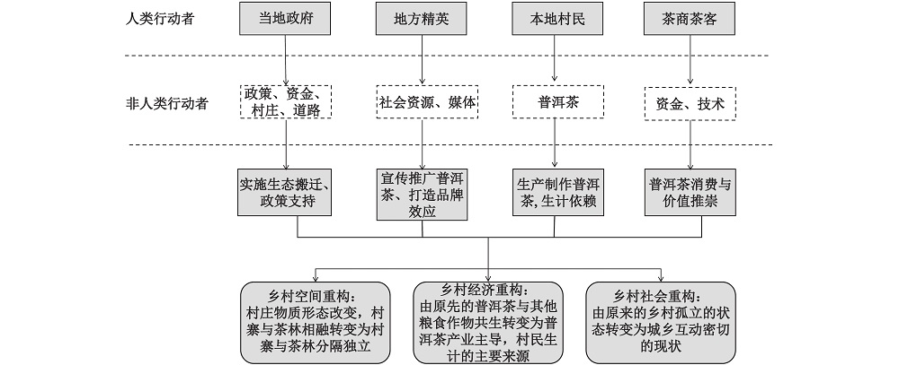 以云南省宁洱县困鹿山村为案例地,基于“自然的社会建构”理论视角,从当地普洱茶的商品化行动者网络中审视人类与非人类、社会与自然的互动过程和复杂关系。研究发现,在普洱茶商品化的时空过程中,不同的人类主体围绕普洱茶展开了一系列社会实践,赋予了其丰富的经济价值和文化意义;与此同时,普洱茶见证了困鹿山村的乡村重构,村落的物质形态和村民的生产生活方式因普洱茶发生了重大转变,其商品化进程已经深深嵌入到地方的发展中。通过剖析普洱茶在困鹿山村重构的核心作用,自然要素的能动性和参与社会实践的方式与过程,进而呼吁从自然与社会的互动视角重新理解中国新时期乡村发展的进程和动力机制。