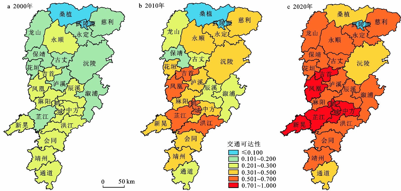 焦胜, 张冰洁, 韩宗伟. 近70年湘西地区陆路可达性及经济联系时空演变[J]. 经济地理, 2020, 40(6): 137-146.