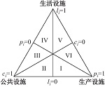 | 注:“>”代表靠前设施在空间内占比更高;li、pi、ci分别为空间内生活设施、生产设施、公共设施的所占比例。 | ||