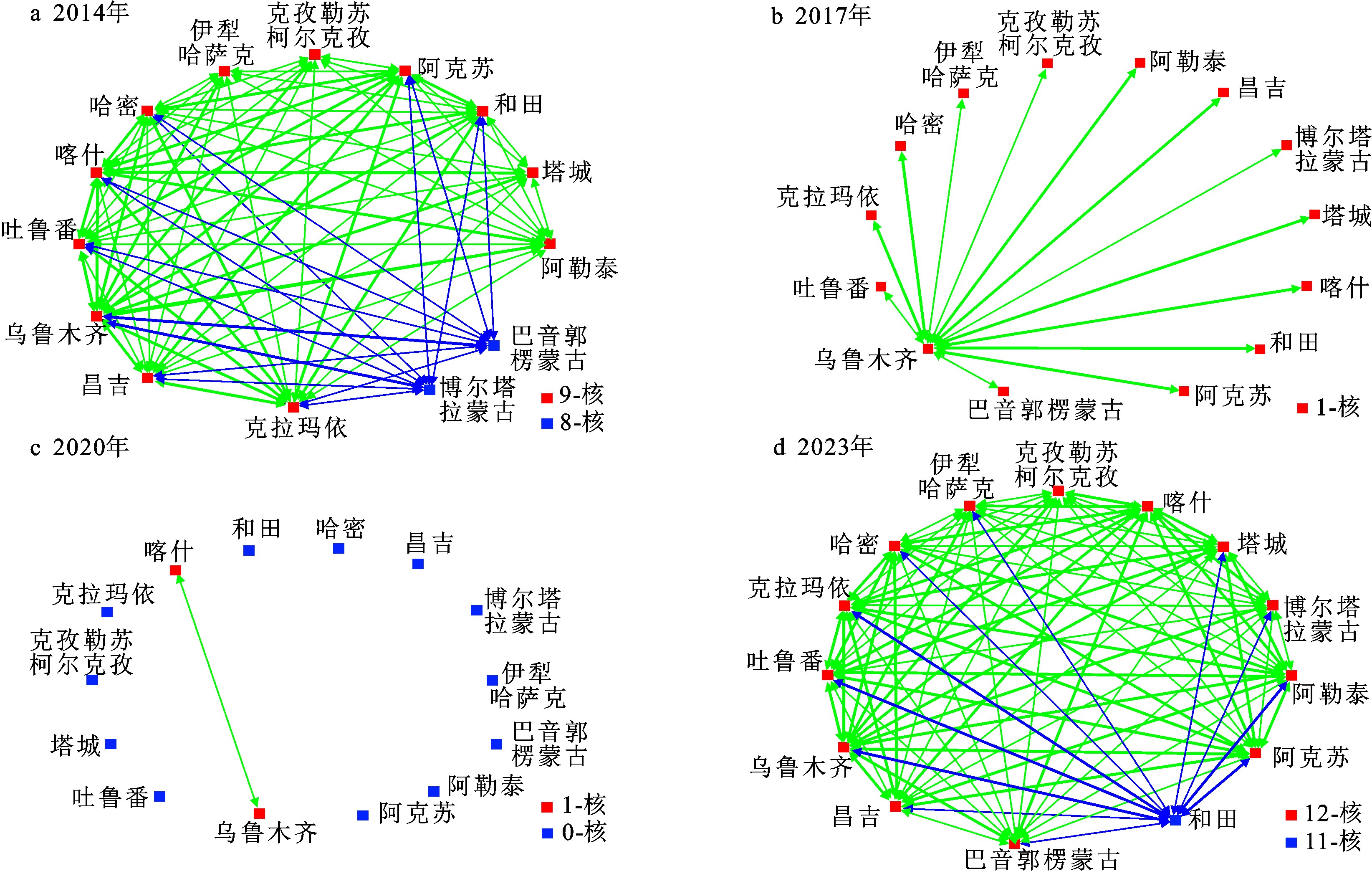The interaction and construction of urban relationship networks have always been the focus of attention for urban geographers. In the information age, the virtual space is the mapping and extension of the real space. The search and connection volume of online tourism information can be regarded as the hotspots of social development or represent the potential travel intentions of consumers. Through the analysis of the informal flow space network, certain reference value can be provided for the tourism industry development planning of various regions. Establishing cross-scale spatial linkages between individuals-regions from virtual space can complement traditional geospatial perceptions. In this paper, we obtain the frequency of tourism information co-occurrence in two cities and municipalities in Xinjiang in Baidu index, and use social network analysis to explore the spatial and temporal evolution of the spatial network structure of tourism information flow in Xinjiang. The results show that: 1) Urumqi City has certain advantages in terms of destination tourism information flow and relationship network, but it does not show the “siphon effect” in the traditional geographic network, but constructs a complex flow relationship network beyond the geographic boundary. This suggests that tourists' willingness to embark on multi-region travel, even travelling across longer geographical distances, is crucial for promoting the balanced development of Xinjiang's regional tourism. 2) In the relational network space, the core-edge network structure is not entirely horizontal, but is hierarchical, and the hierarchical categorization is not based on its own inherent resource strengths and weaknesses as a single measure, but rather depends on the number of connections between nodes. It can be seen that in the information flow space, establishing information links becomes one of the ways for edge nodes to enter the core subgroups. 3) The core-edge hierarchical structure shows a dynamic change process, which challenges the idea of “the strongest is stronger than the strongest”, and by connecting to the core nodes, the nodes that were originally regarded as peripheral nodes can also be promoted to the core nodes, such as Hotan and Kashgar. The dynamic nature of real-time “reshuffling” and replacement of the positions of each node in the network reflects the importance of observing the development status of cities from informal networks, and can provide new insights for establishing interactive development relationships among cities. This paper not only verifies the innovative idea that networks are hierarchical, but also reveals the dynamic process of hierarchical change through spatial and temporal evolution characteristics, which provides new insights into the establishment of interactive development relationships between cities and provides new practical insights for marginal tourist destinations to become core tourist areas.