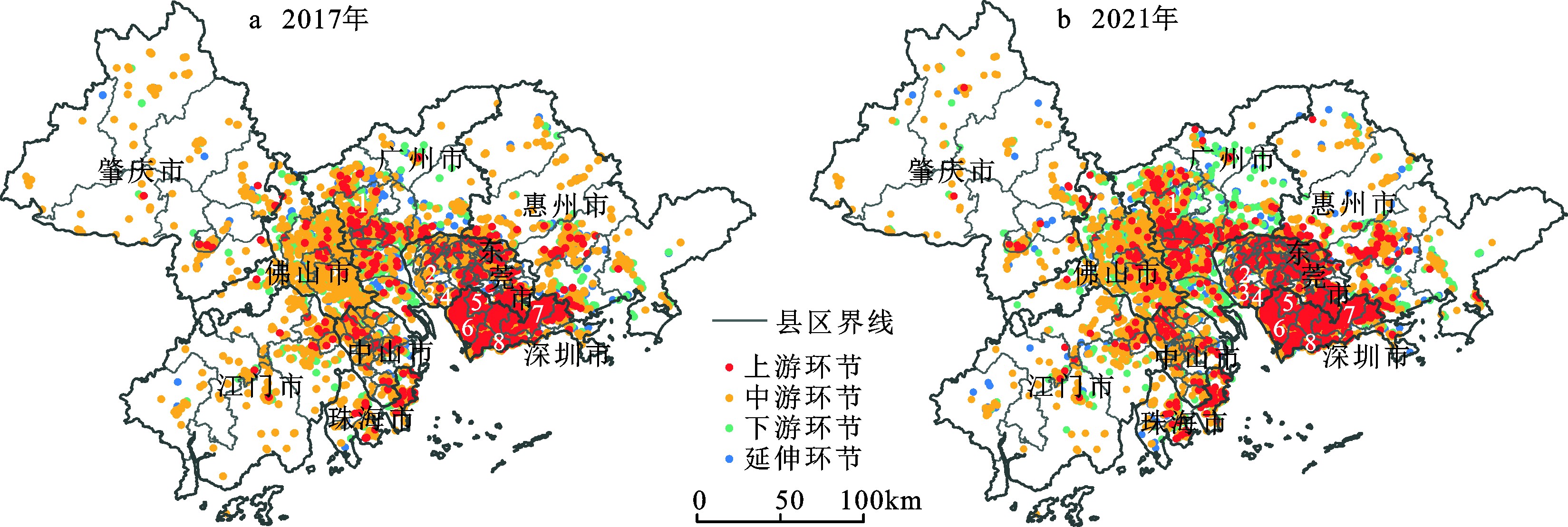 表1 珠三角新能源汽车数据库各环节的企业数量Table 1 Number of enterprises in each segment of new energy vehicle database in the PRD |