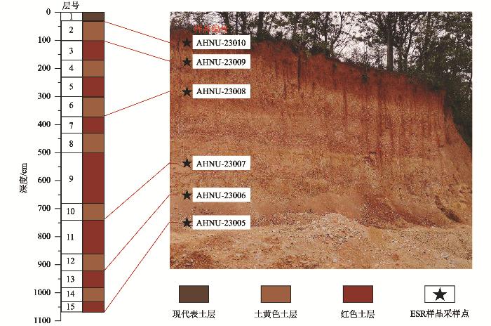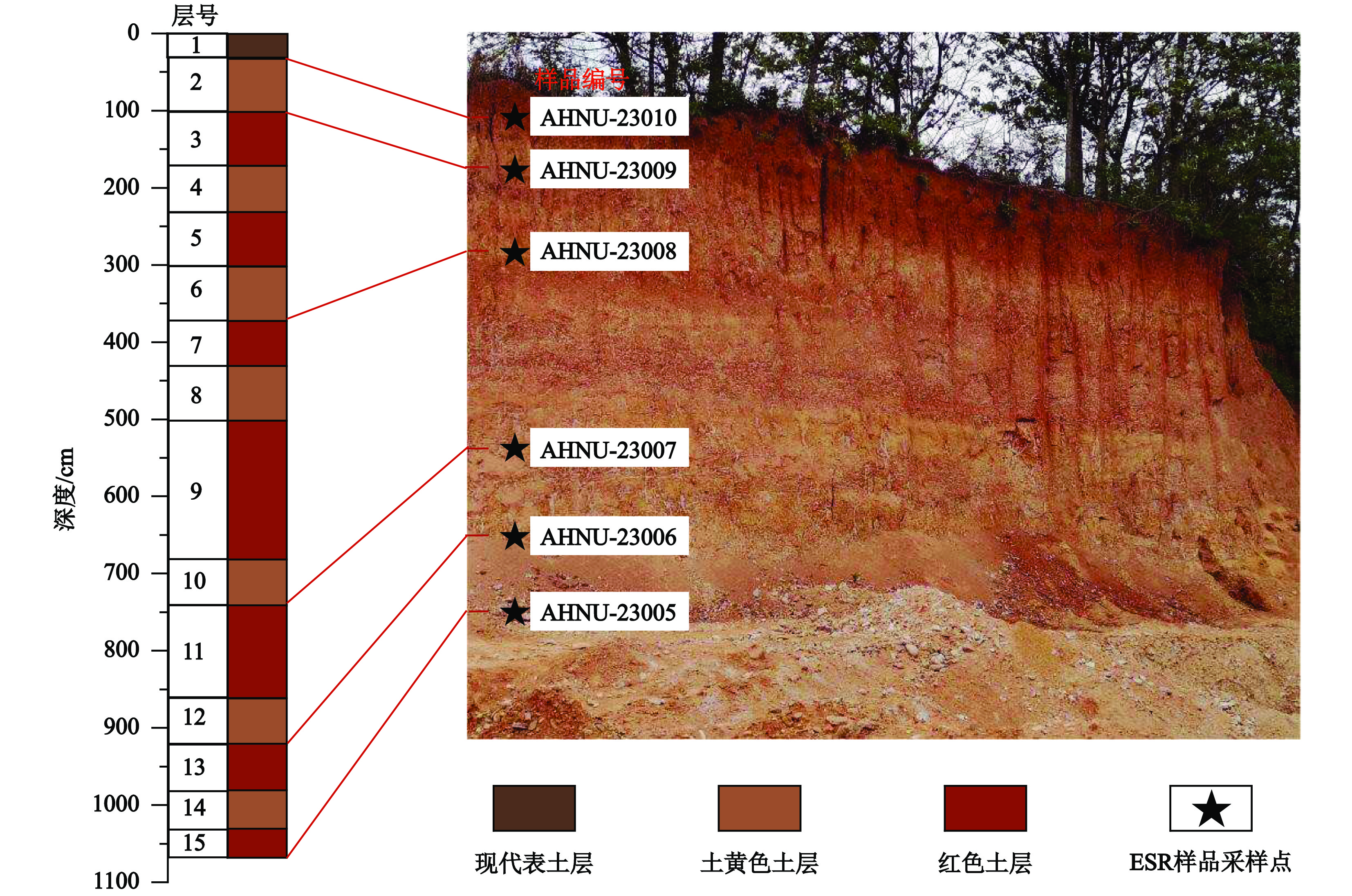 图2 宣城电厂红土剖面层位划分与ESR样品采样位置Fig. 2 Stratigraphic division and ESR sampling points of electric power plant red clay section in Xuancheng |