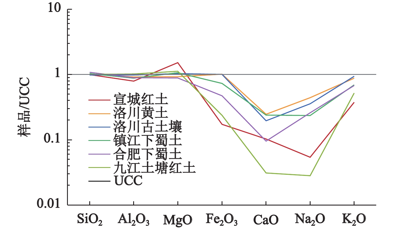 表2 宣城电厂红土剖面常量元素含量特征Table 2 Characteristics of macronutrient content of electric power plant red clay section in Xuancheng |