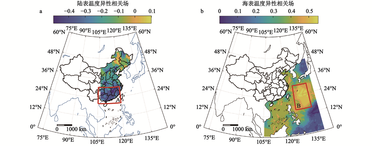 A和B分别为陆地气温和海表温度耦合显著区;未含港澳台数据;审图号: GS(2019)1822号,下同