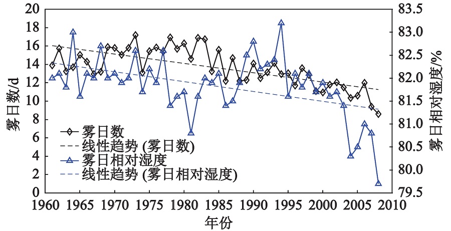 华南地区冬季雾日数及雾日相对湿度变化