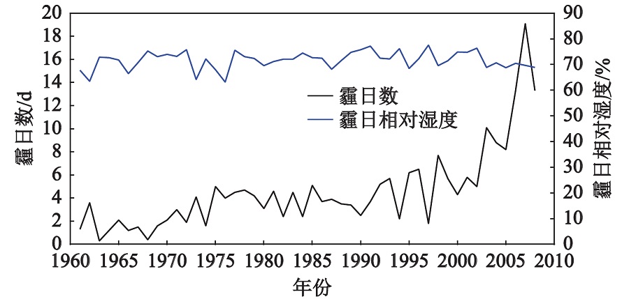 华南地区冬季霾日数与霾日相对湿度变化