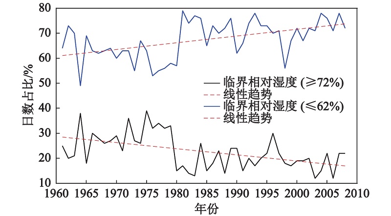 华南地区冬季雾霾临界相对湿度条件的气候变化特征