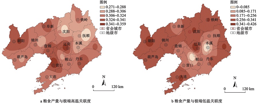 1984—2020辽宁省粮食产量与极端气温响应空间分布格局