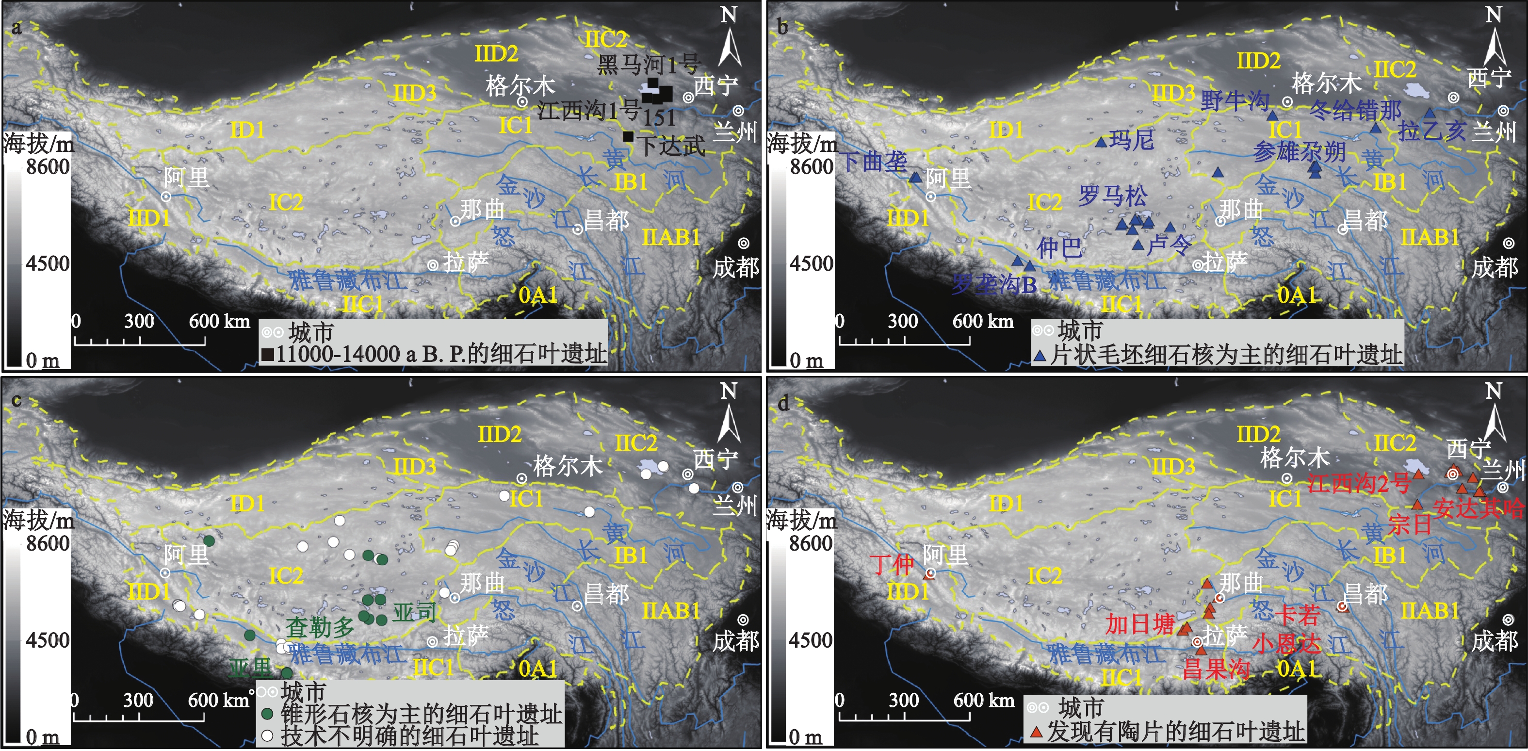 h 扎布金雄[34];i, l罗垄沟B[29];j, p 丁仲[35];k, r亚里[37];m 玛尼[34];n 加日塘[38];o 昌果沟[39];q 亚司[34];s, t 卡若[40]