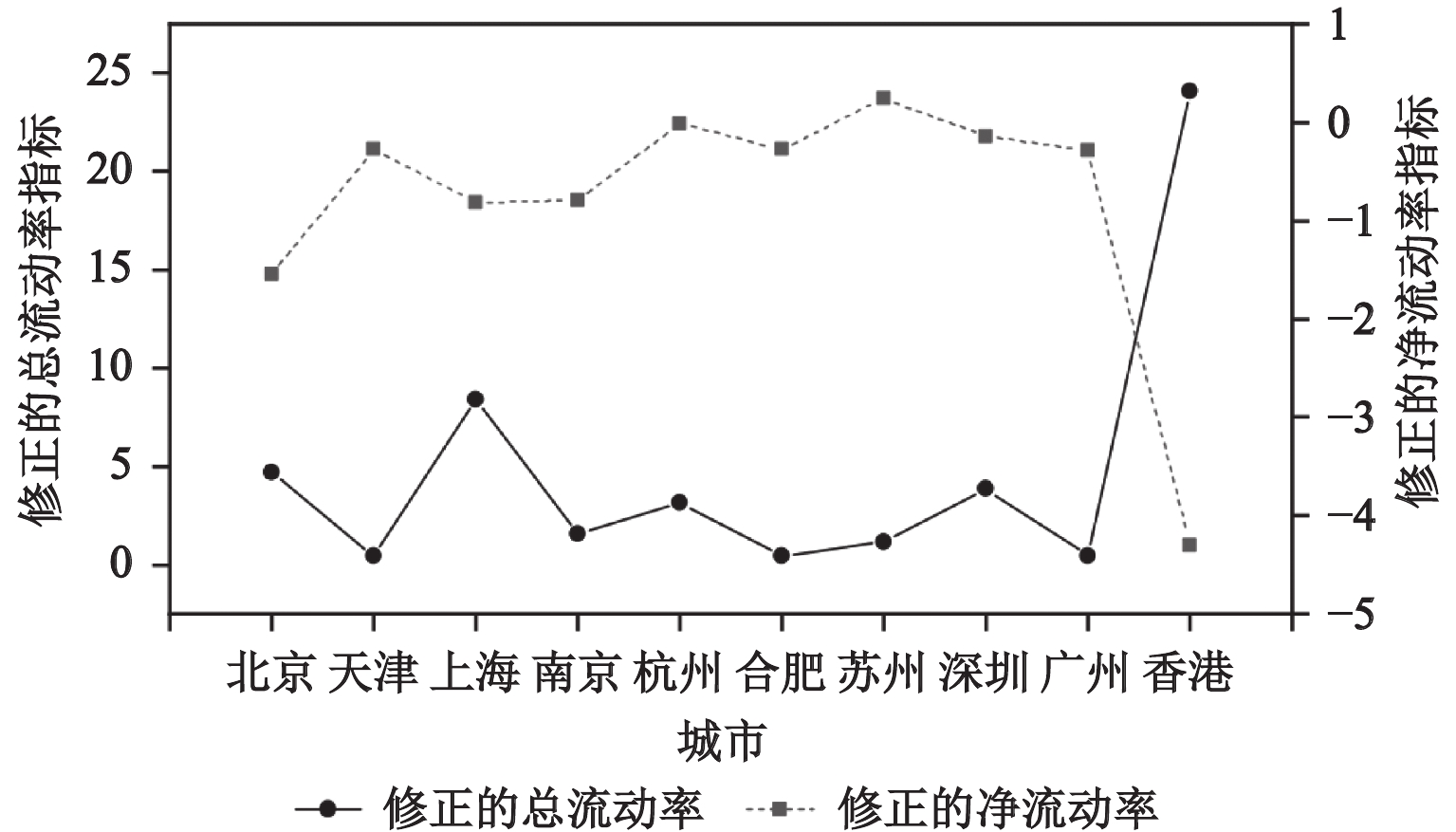 2021—2022年中国三大城市群主要城市修正的总流动率和净流入率
