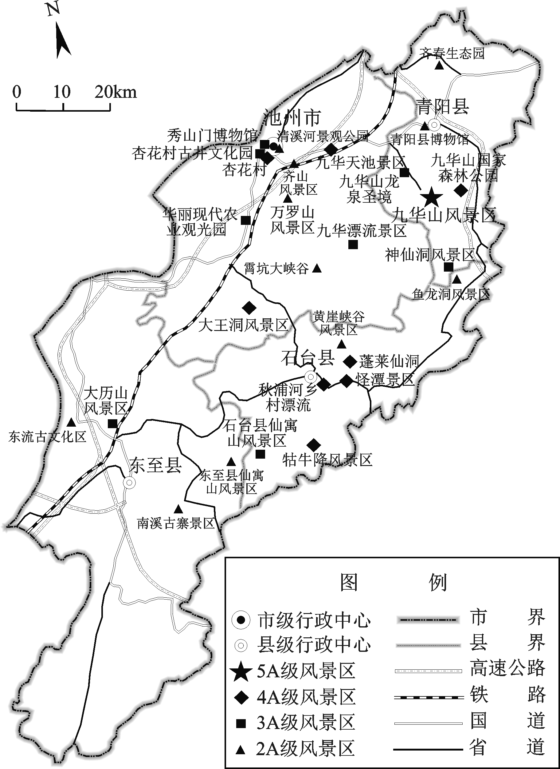 Fig.1 Distribution of grade A scenic spots in Chizhou图1 池州市A级旅游景区 |