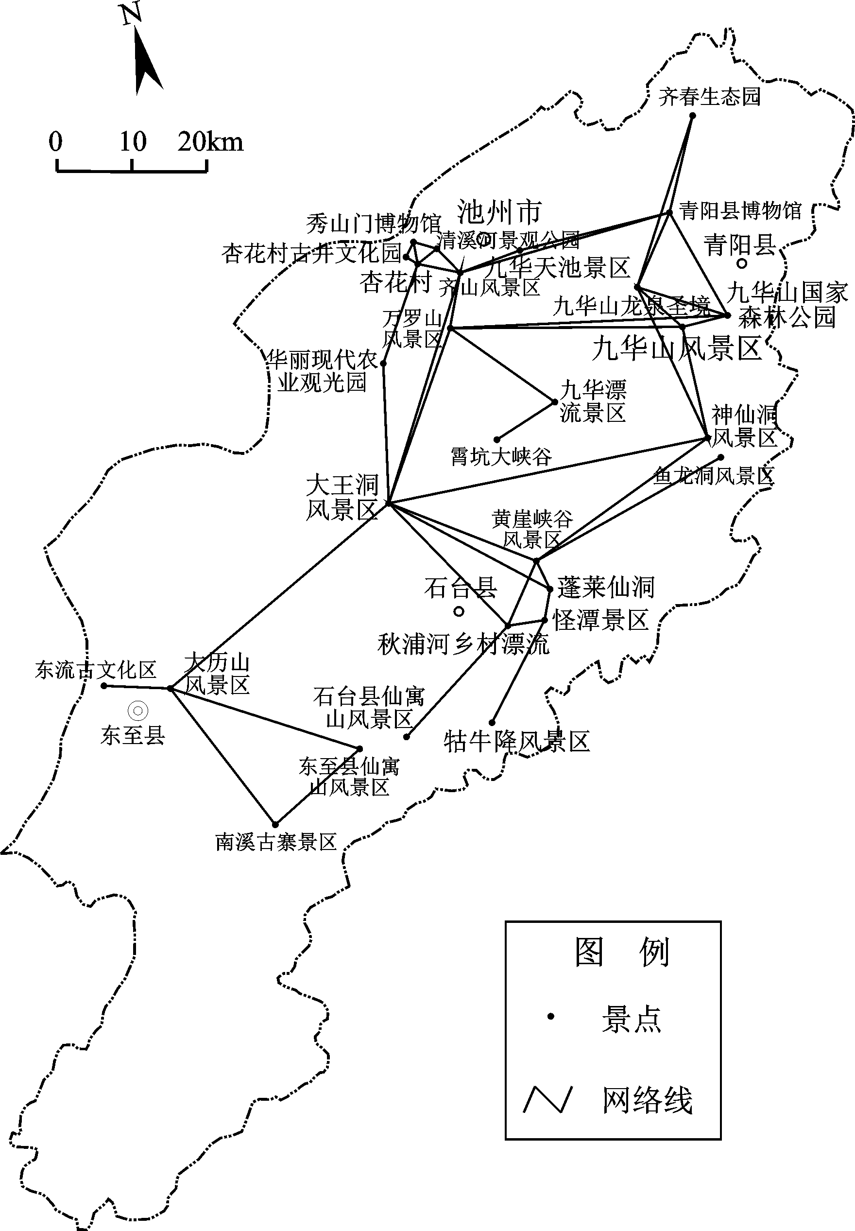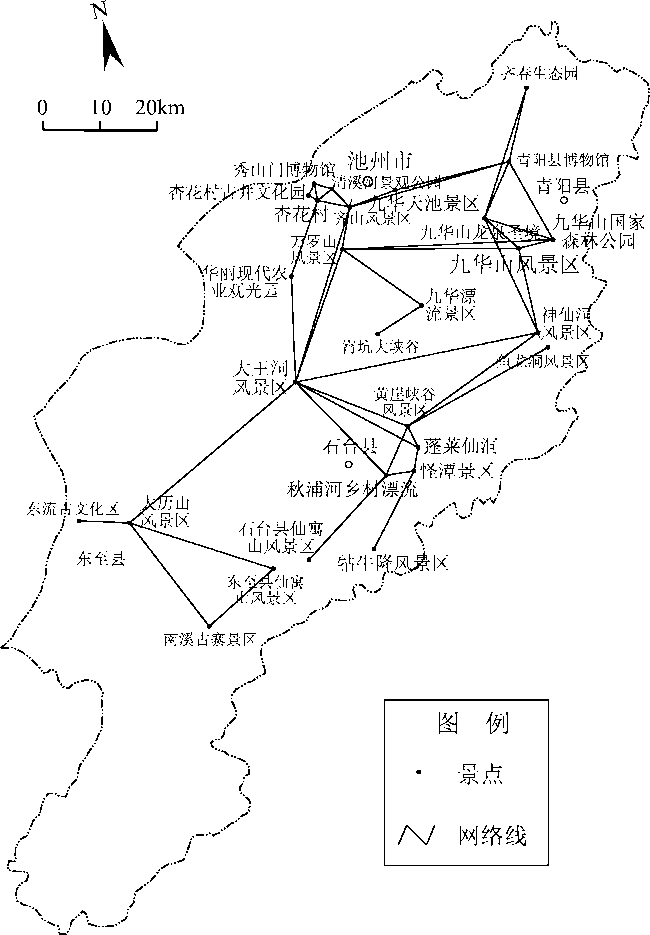 Fig.2 Spatial topological graph of scenic spots in Chizhou图2 池州市旅游景区空间拓扑图 |