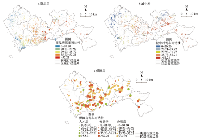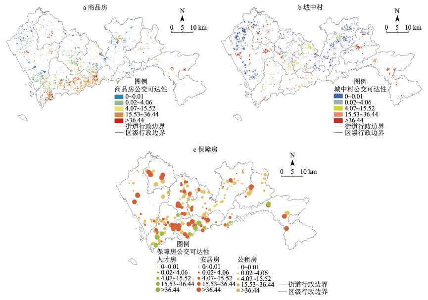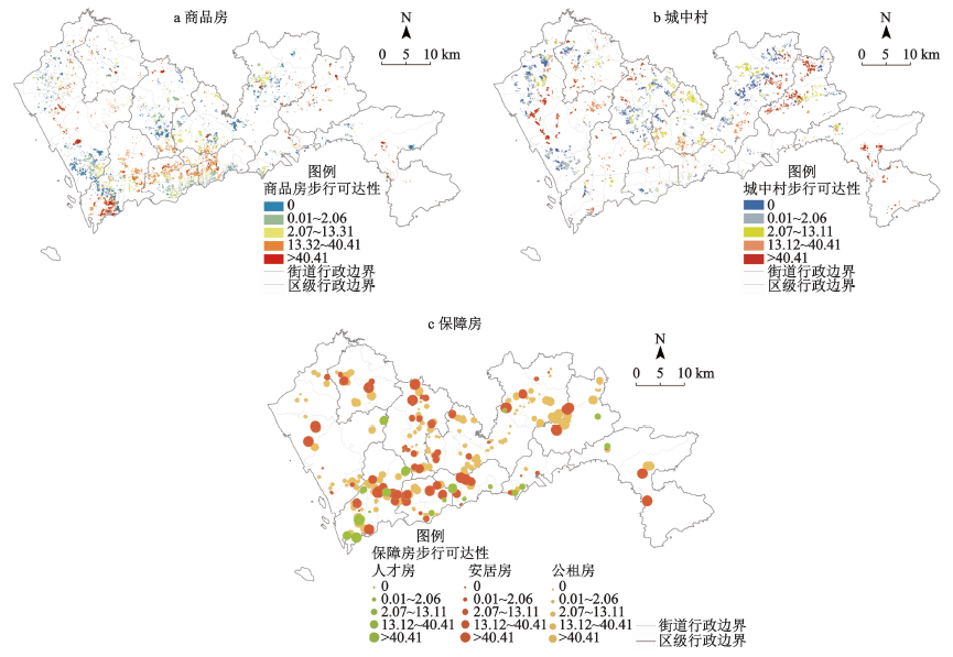 表1 多交通模式下深圳各住房群体公园绿地可达性Table 1 Multi-model park green space accessibility of different residences in Shenzhen |