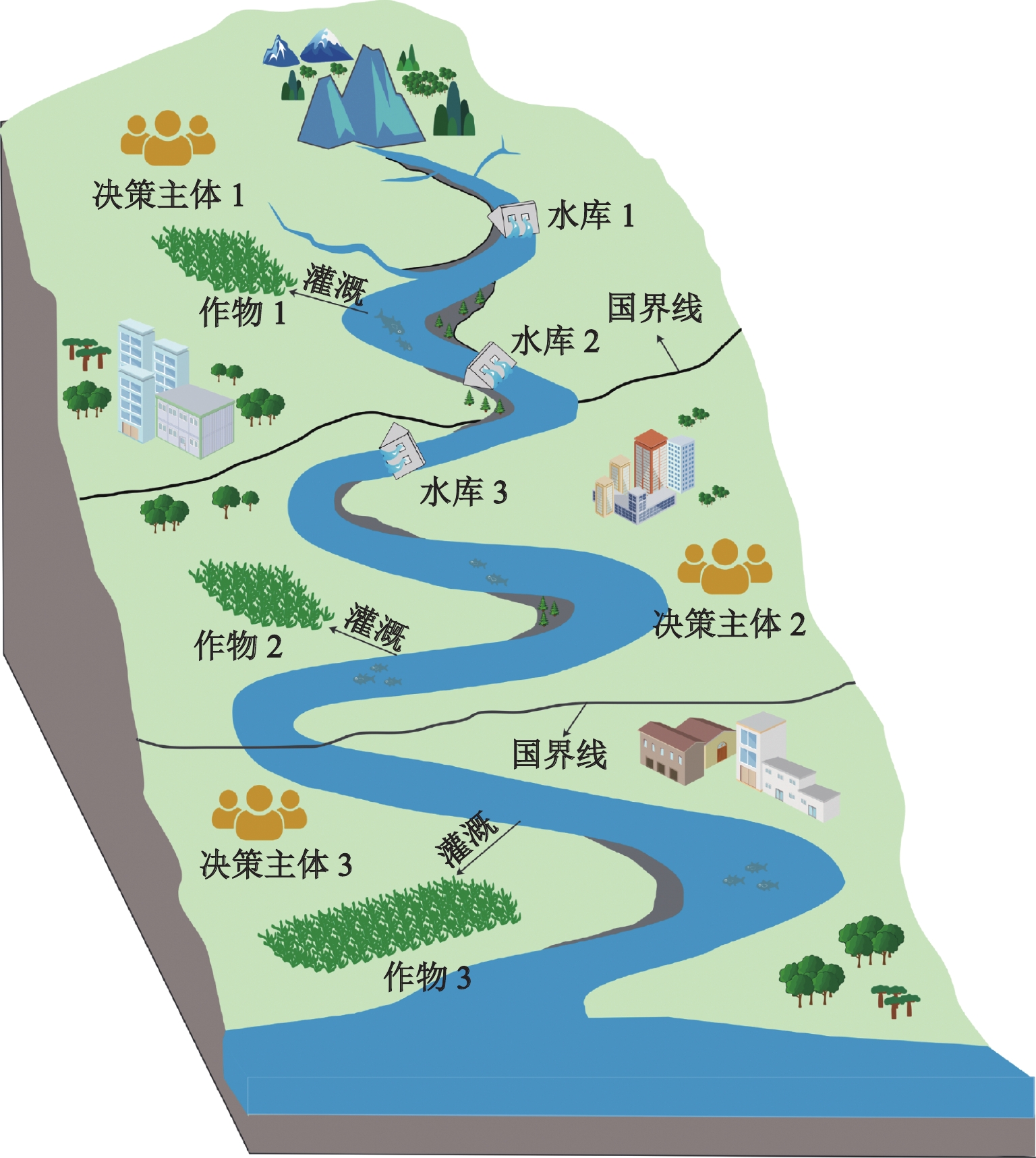 | 水文经济模型 | 集成模型 | 量化关联关系系统指标的经济效益,模拟变化环境下资源效益变化特征 | 喜马拉雅河、青尼罗河、塞内加尔河 | [40,57-58] |