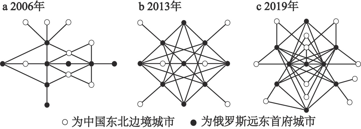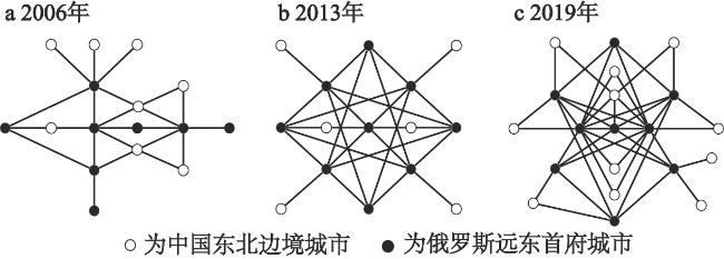 表3 2006—2019年中俄边境城市经济联系网络的总体特征指标Table 3 Economic network of the China-Russia border regions in 2006—2019 |