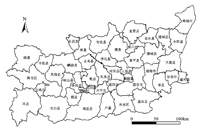 关中地区在全国区域经济格局中具有重要战略意义,被确定为全国16个重点建设地区之一,《西部大开发“十一五”规划》将其列为区域性商品粮基地建设重点区,《关中―天水经济区发展规划》提出要打造内陆型经济开发开放的战略高地,在多种因素的相互作用下,该地区耕地非农化与耕地资源保护之间的矛盾日益突出,人地关系日趋紧张,自然生态与社会经济系统协调的难度不断增大。因此,准确、定量的评估区域农业生产自然风险的影响,可为区域农业生产结构调整和农业发展规划提供决策依据。