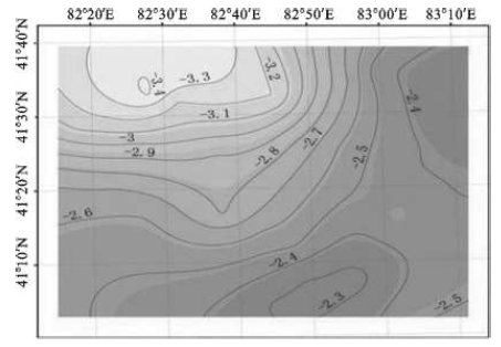 为了获得研究区地下水埋深更加全面的信息,利用渭干河管理处38个灌井多年地下水埋深数据,在空间分析模块中进行kriging插值,得到如下数据(图2)。误差范围是-0.452~0.532,基本上满足对于研究区地下水埋深的趋势预测的要求。