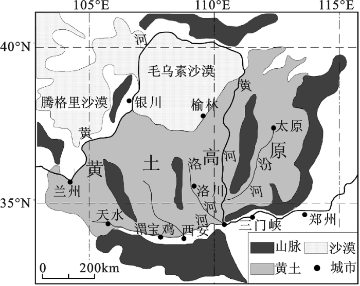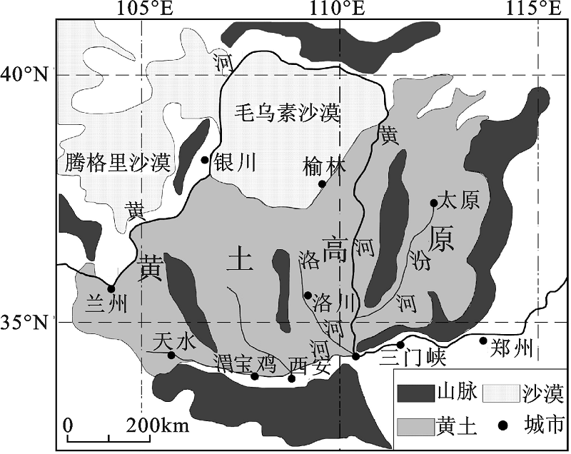 黄土高原范围大致为太行山以西,乌鞘岭以东,秦岭以北,长城以南;南部为渭河断陷盆地;东部为吕梁山、太行山以及汾河断陷盆地;西部为祁连山褶皱带的南端。黄河中游部分主要流经黄土高原,其干、支流系统基本构成了黄土高原的水系格局,主要支流有渭河、泾河、洛河和汾河等(图1)。