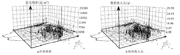 图4 中国城市住宅均价和房价收入比的空间分异总体趋势比较