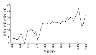 图2 东川铜矿资源开发生命周期:1960~2005年