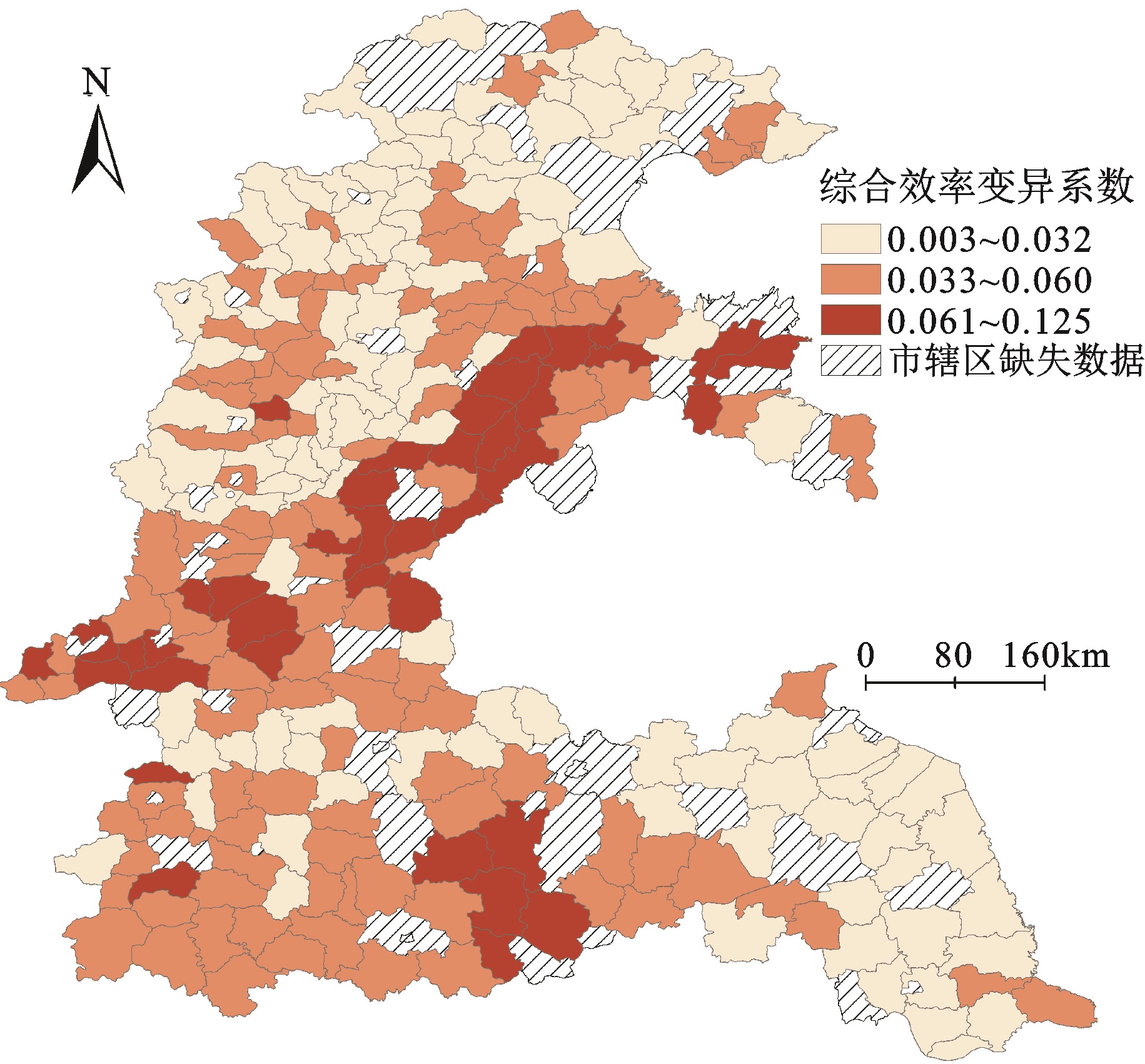 Fig. 2 Variation coefficient of agriculture efficiencyin the Huang-Huai-Hai Plain