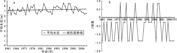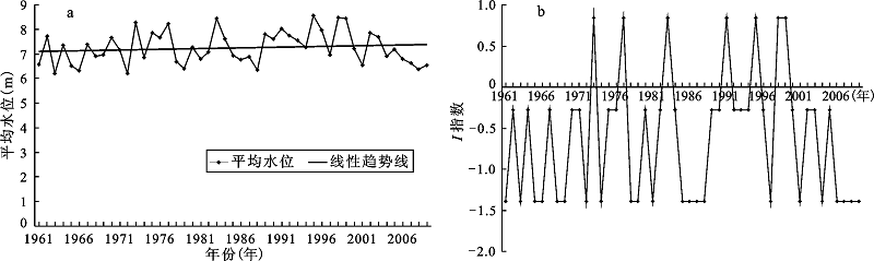 Fig.6 Average river level from 1961 to 2009 in Nanjing Station (a) and I index (b)