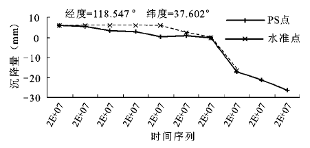 Fig. 6 The monitoring results comparison of PSInSAR and leveling points