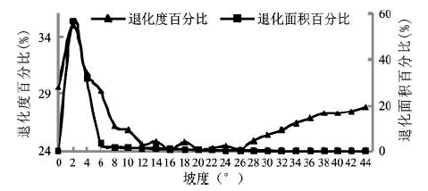 图5 2008~2011年植被覆盖退化度及退化面积随坡度变化