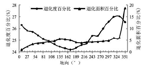 图7 2008~2011年植被覆盖退化度及退化面积随坡向变化