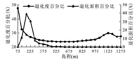 图3 2008~2011年植被覆盖退化度及退化面积随高程变化