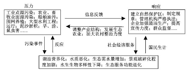Fig. 1 Sketch of “pressure-state-response" of the health of lakes