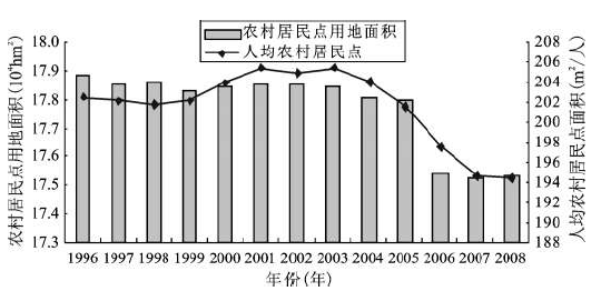 图1 1996~2008年长株潭地区农村居民点用地面积和人均农村居民点用地面积变化