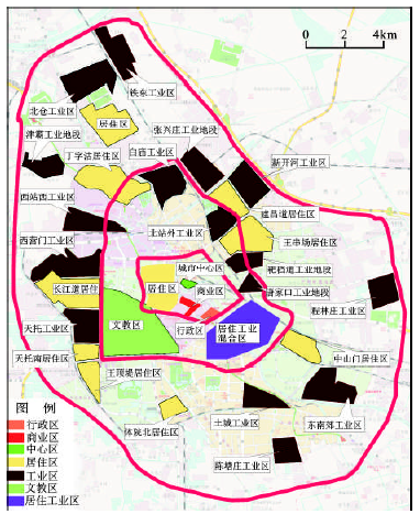 | 图2 20世纪70年代天津中心城区功能示意图 |