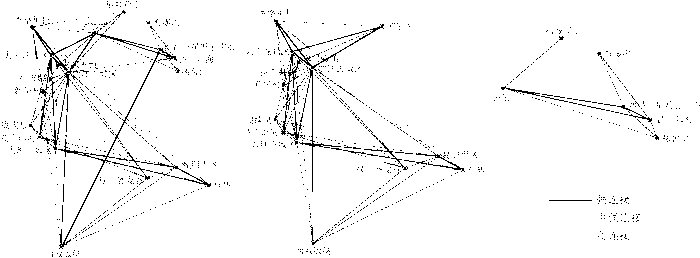图4 泸沽湖跨界旅游客流网络图( a 跨界旅游旅游流网络 b 云南片区旅游流网络 c 四川片区旅游流网络)