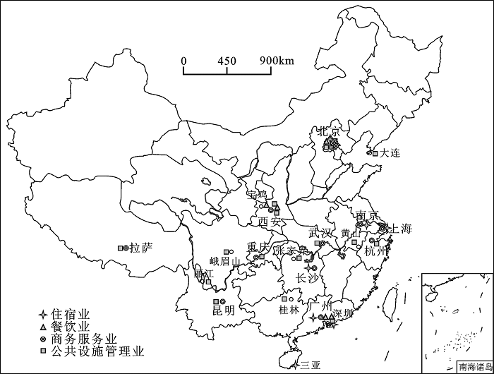 采集旅游上市公司样本资料,研究旅游上市公司空间分布、发展变化的行业差异,样本公司分属住宿餐饮业、商务服务业、公共设施管理业。空间分布特征:① 集聚分布,具有“溯源”性。住宿餐饮业、商务服务业分布指向高级别中心城市,北京、深圳2市最集中。公共设施管理业指向高级别旅游吸引物分布地,省区分布非常分散。② 比较中国旅游企事业单位省市排名,旅游上市公司集聚区与旅游企事业单位集中区错位分布。③ 主营业务投资地区分布受行业特征影响,住宿餐饮业、商务服务业投资异地化,分散化;公共设施管理业投资本地化,集聚化。分析样本公司年份区间数量及行业归属变化,得出结论:① 住宿餐饮业、商务服务业行业变化活跃,时间序列间歇式缓慢发展;② 公共设施管理业行业相对稳定,“井喷”后缓慢延续发展。