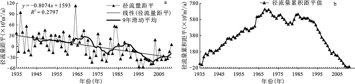 图1 1935-2011年渭河(华县站)径流量距平值(a)及径流量累积距平值(b)变化
