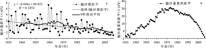 图4 1935-2011年渭河(华县站)输沙量距平值(a)及累积距平值(b)变化