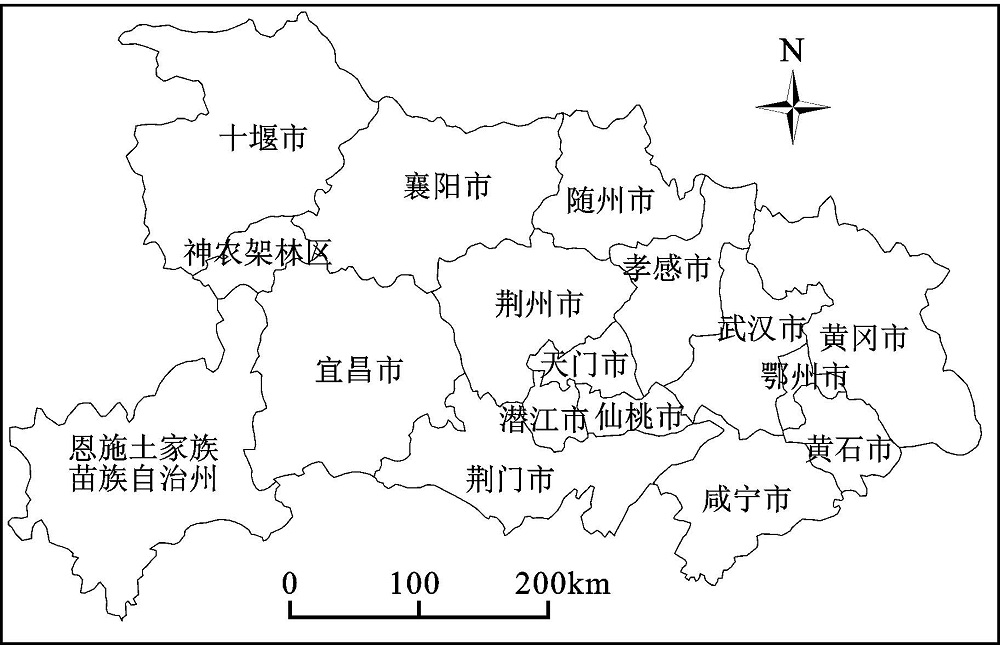 Fig.1 Administrative divisions of prefecture-level cities in Hubei Province