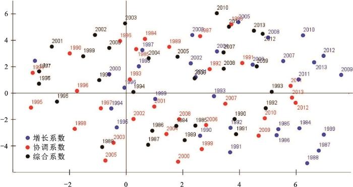 | 类型 | 增长系数 | 协调系数 | 综合系数 |