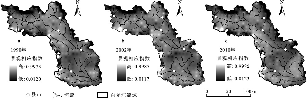 Fig.3 Landscape response distribution in Bailongjiang River watershed from 1990 to 2010
