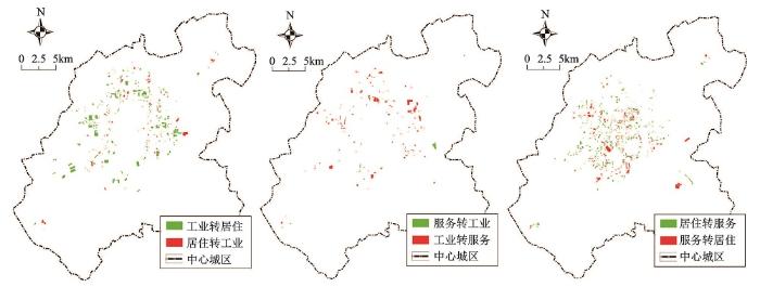 图3 1995~2011年长春市中心城区主要用地类型转换分布