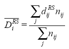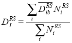传统地震现场烈度评定中,依据房屋建筑震害调查资料进行震害指数的统计分析,再借助震害指数与地震烈度的对应关系,结合其他震害表现,综合评定地震烈度。为了更好地运用遥感手段评估地震烈度,作者等将“震害指数”引入到震害遥感评估研究中,提出了“遥感震害指数”的概念,发展了震害和地震烈度遥感定量分析方法⑤-⑥(⑤ 王晓青,丁香,窦爱霞,2004. 伽师地震遥感震害定量关系研究(内部)⑥ 中国地震局地震预测研究所, 2008. 2008年四川汶川地震震害遥感影像解译图集 (内部)),[12-16]。该方法仿照地面调查的地震烈度评定方法,依据遥感解译获得的建筑物震害资料,以街区或自然村为统计单元,按照式(1)计算结构类型i遥感评估的平均震害指数