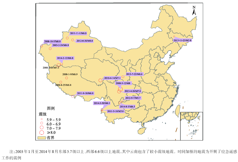 Tab. 2 The cases of remote sensing based emergency application of typical earthquake events