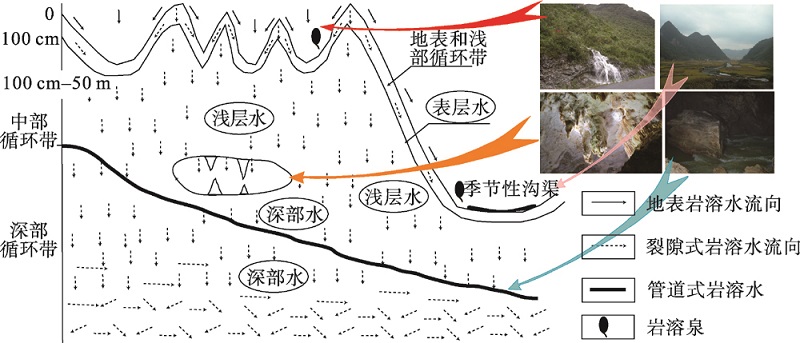 Fig. 5 The sketch map of zoning modes of karst water in the area of Shuijing Cave in Bama, Guangxi