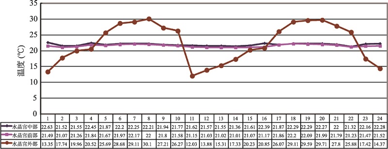 Fig. 6 The temperature variation of Shuijing Cave in Bama, Guangxi from January, 2009 to December, 2010 (1-12 represent the temperature variation from January to December, 2009; 13-24 represent the temperature variation from January to December, 2010)