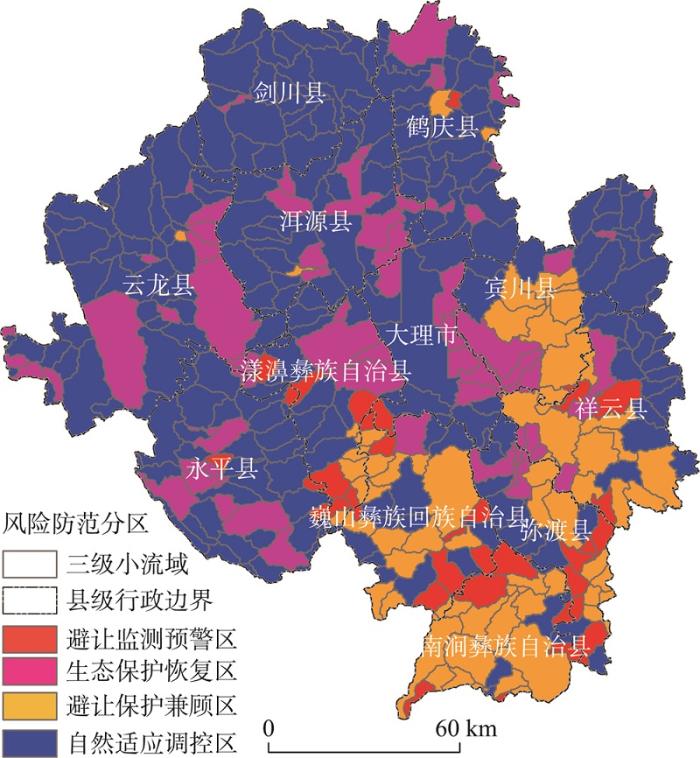 图7 大理州分流域滑坡灾害生态风险防范分区