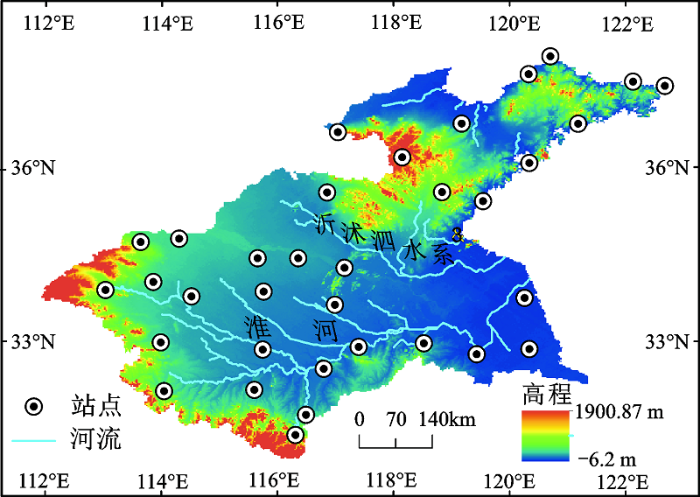 图1 淮河流域范围及气象站点位置